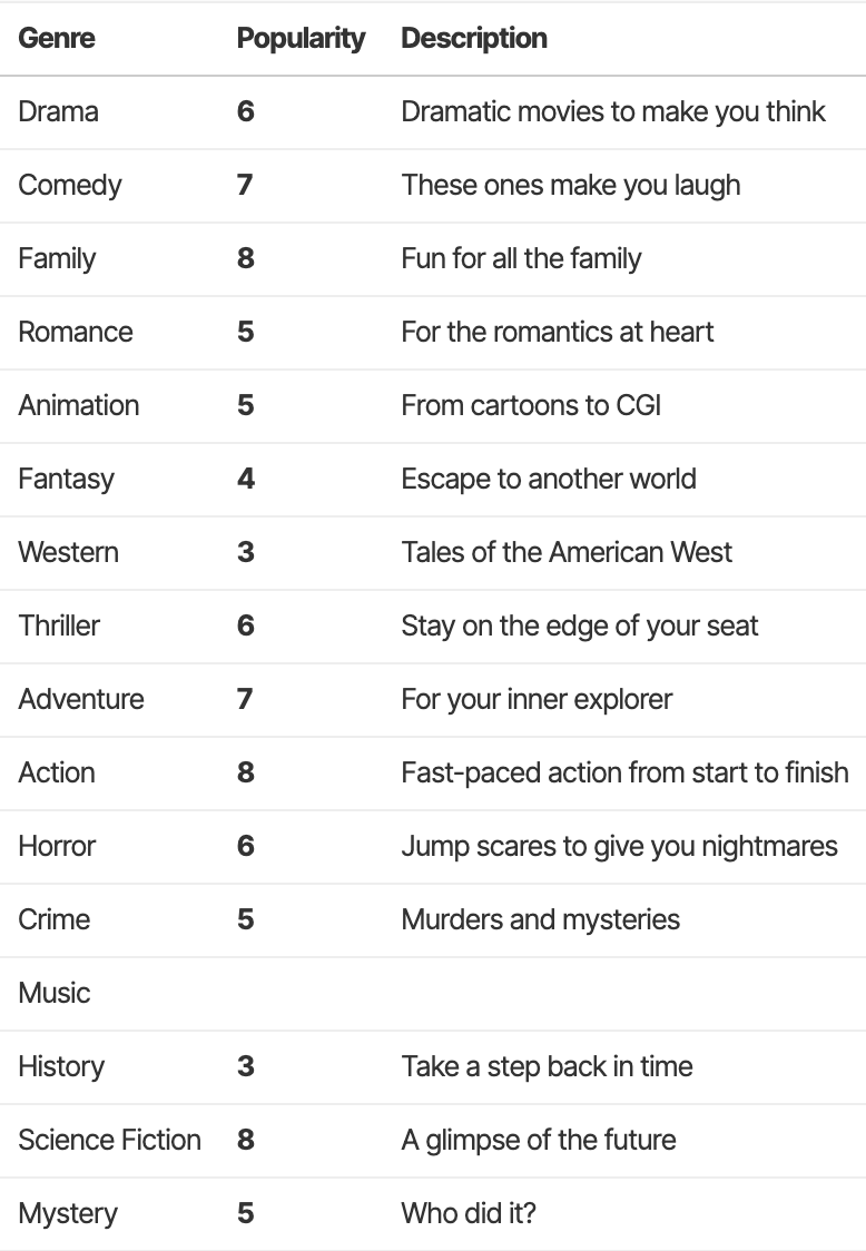 Styling and class names are intentionally basic, since you are expected to style them with CSS to fit your app's overall visual language.