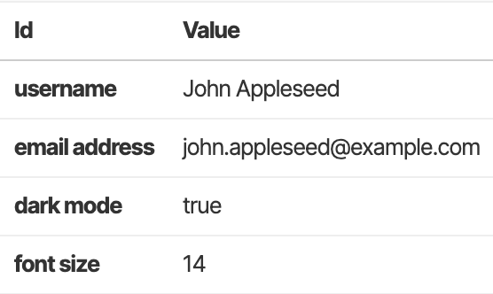 The ValuesInHtmlTable component is the simplest way to render Store values: